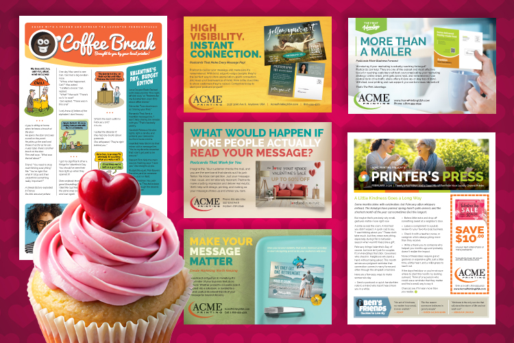 You don’t have to convince your customers that connection matters in February, but you can show them how simple, tangible pieces like postcards and newsletters make that connection feel warmer, more personal, and harder to ignore. The February 2026 Direct Mail For Printers content lineup (available now) leans into postcards and small-format print as the easiest way to say “we’re thinking of you” without a complicated campaign. From humor-filled newsletters and local postcard promotions to a nonprofit messaging guide, every piece is designed to help you start conversations, build loyalty, and sell more print with kindness at the center. Whether you use one piece or build a full campaign, here’s how to put this month’s content to work for your shop. Direct Mail For Printers Options Coffee Break Humor Newsletter Print Type: Folded newsletter self-mailerSize: 8.5″ x 14″ flat, trifold The Coffee Break newsletter is all about lighthearted connection, packed with clean jokes, a playful Valentine’s-themed sidebar, and a March 2026 calendar full of quirky dates and historical moments. This issue includes groan-worthy winners like: What’s the best outfit for February 2nd? A tu-tu. I got my significant other a fridge for Valentine’s Day. You should’ve seen their face light
